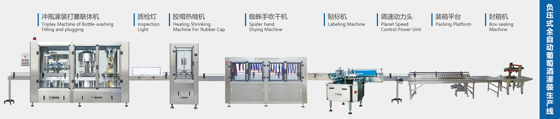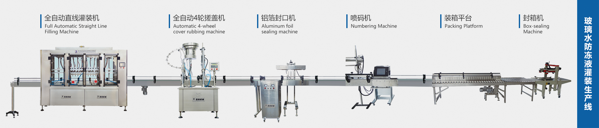 ? ? 本公司研制生產的主導產品高精度液體定量灌裝機,采用專利灌裝閥,具有灌裝精度高,灌裝量調整范圍大、適應瓶型廣、拆卸方便、維修簡單、使用壽命長等特點,并生產與之配套的沖瓶機、旋蓋封口機、打塞機、吹干機、貼標機、噴碼機、封箱機等。